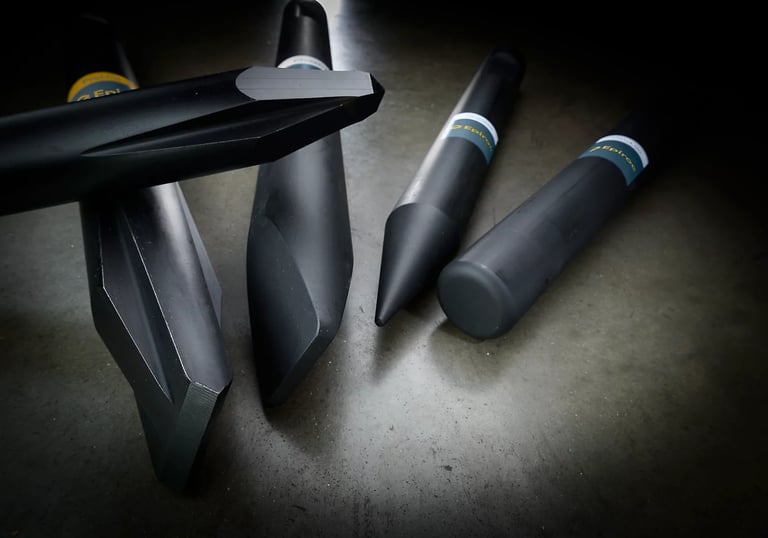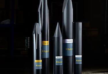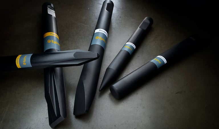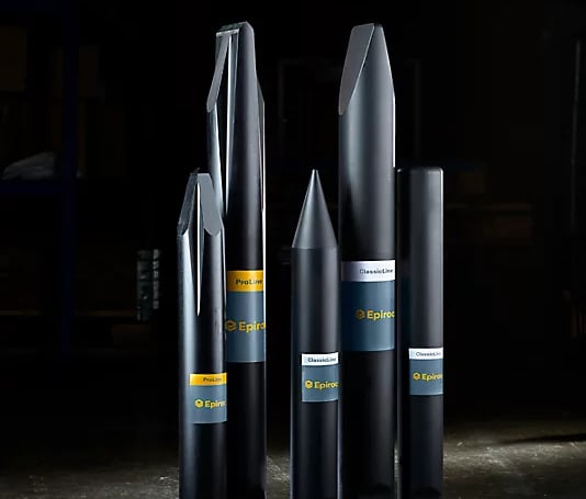 Vi har et stort lager med meisler og slitedeler til alle Epiroc-modeller.